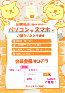 ご来院の際に、ご利用方法のリーフレットと合わせて