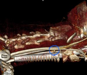 今回治療したワンちゃんの腫瘍は、正常サイズの上限ほどの大きさでした。異所性上皮小体腫瘍が無いことをCT検査で確認し、手術により摘出しました。病理検査は、上皮小体腺癌でした。