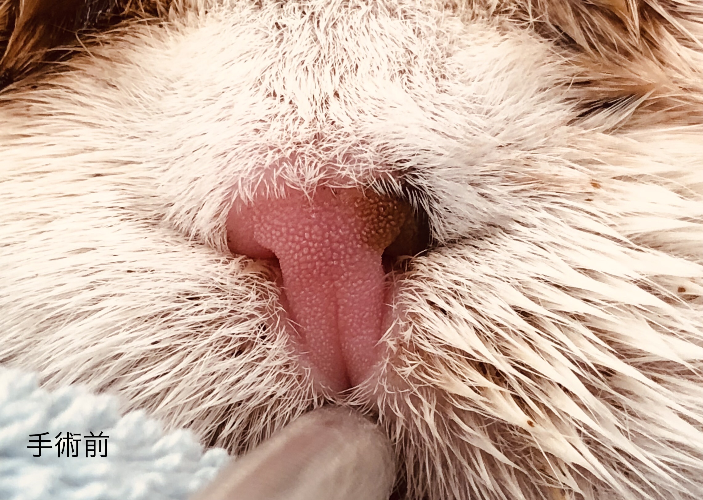 飼い主様が手術を希望されたため、1回目の手術で側方化術を行いましたが、完全には広がらず、2回目の手術で腹側の皮膚形成を行いました。