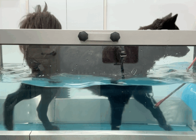 2025年7月から、『水中トレッドミル』での歩行訓練を始めました。