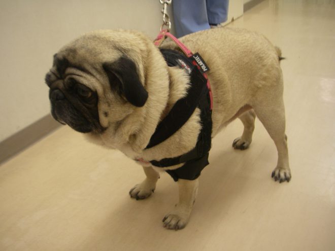 約3ヶ月間内方脱臼した状態でした。痛めた足は、曲げた状態で歩行していました。診断後治療して正常な歩行へ回復できています。